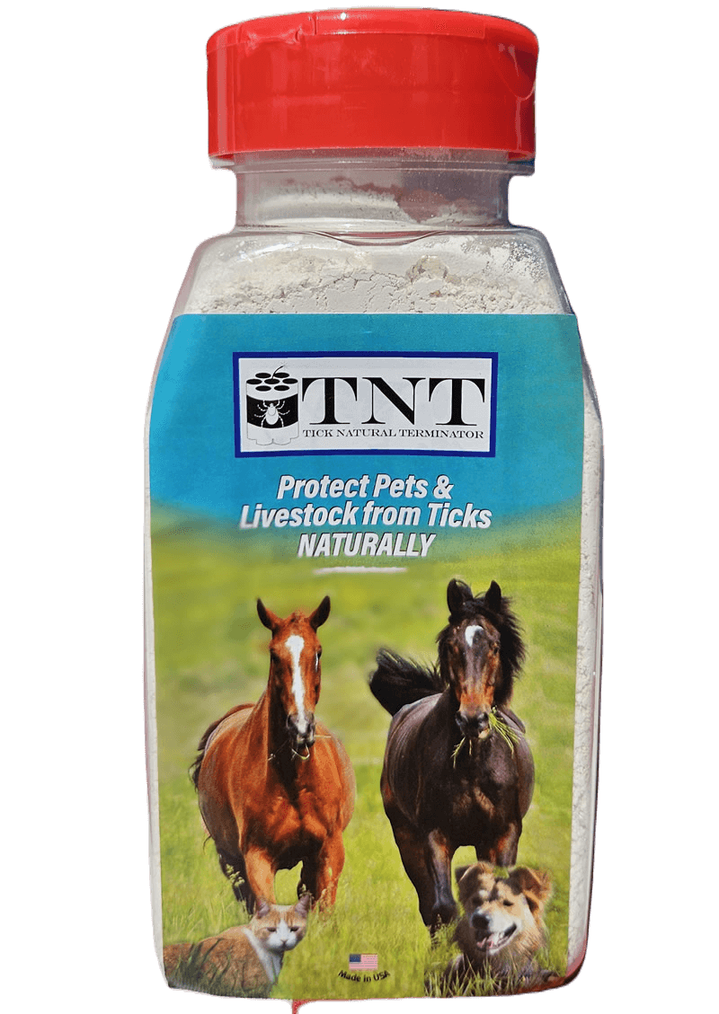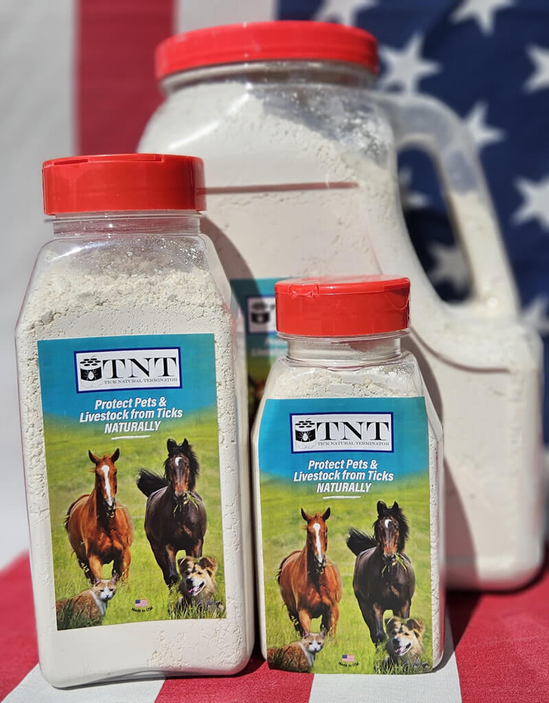 TNT uses a unique, patent-pending process featuring calcium as a dessicant to dehydrate various pests, including ticks and fleas. Our finely milled formula adheres to animals and clothing, intensifying its drying effect. We also include mint to naturally deter flies.
